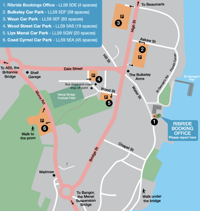 On street car parking in Menai Bridge is limited but the town does have four car parks all within a short walk
